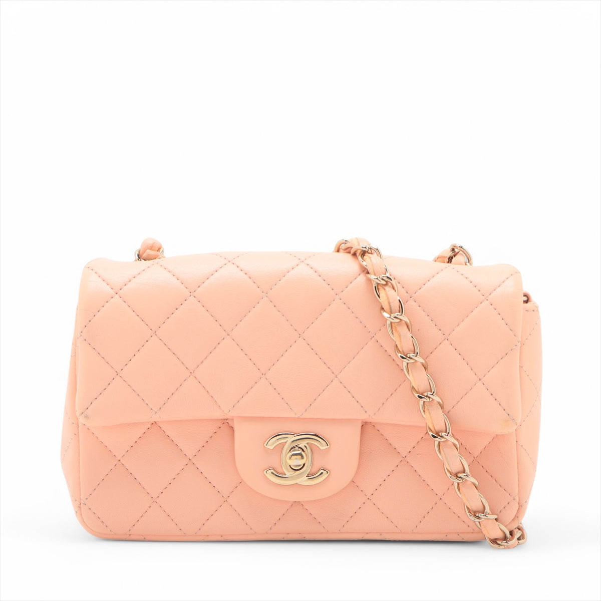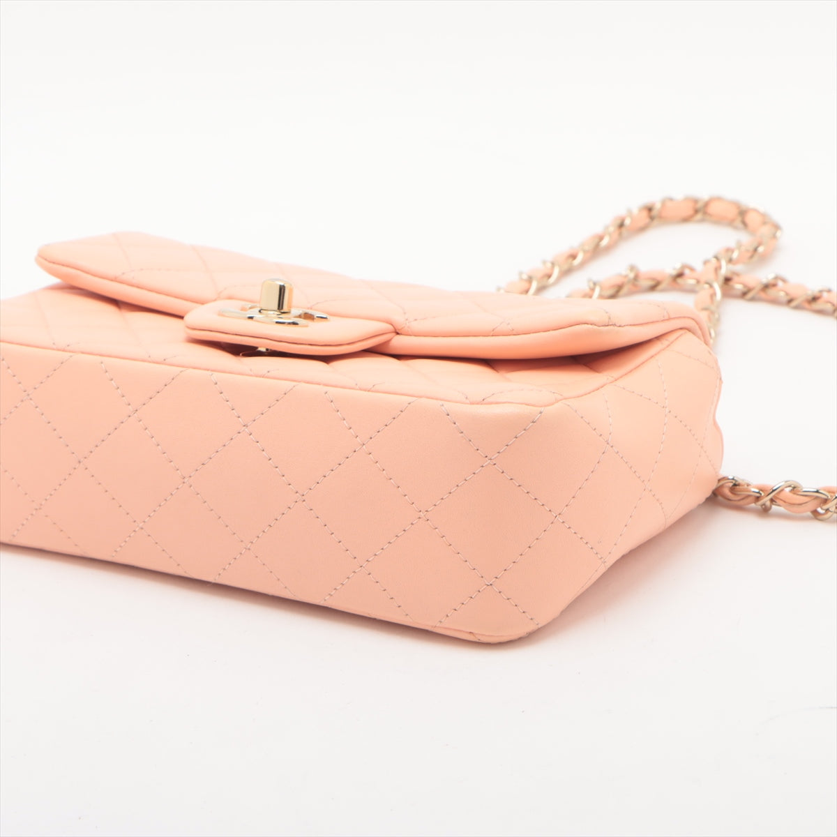 The Chanel CC Logo Mini Matelassé 20 Lambskin Single Flap Single Chain Bag in Salmon Peach is a delicate and elegant accessory that embodies the timeless charm of Chanel. Crafted from soft, luxurious lambskin leather, the mini bag features the iconic diamond quilting and a classic CC turn-lock closure. The warm salmon peach hue adds a subtle pop of color, perfect for both day and evening wear. Despite its compact size, the bag offers a surprisingly spacious interior for essentials like a phone, small wallet, and cosmetics, making it as practical as it is stylish.