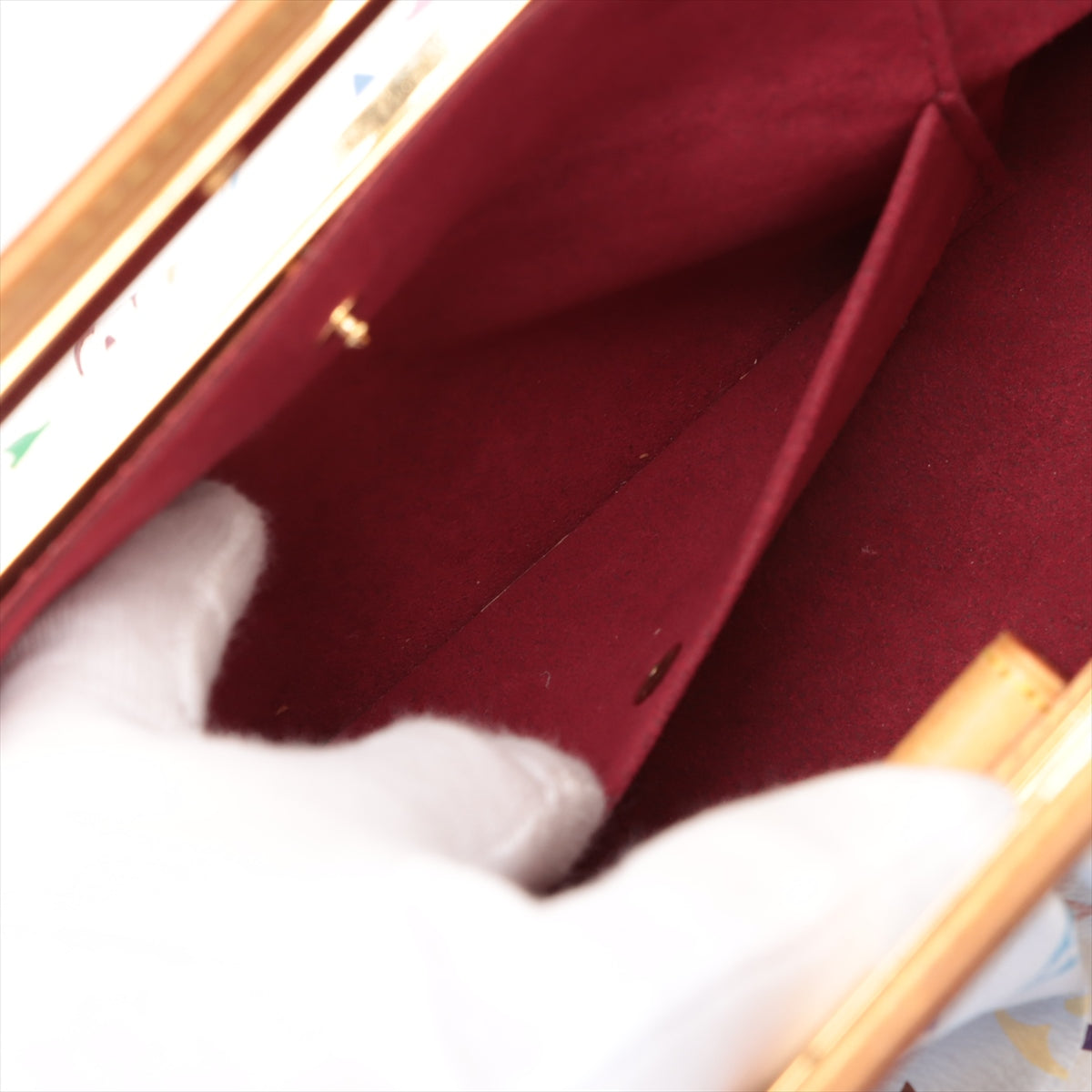 The Louis Vuitton Monogram Multicolor Judy MM in White is a stylish and eye-catching handbag featuring the iconic multicolor monogram pattern on white leather, a collaboration with artist Takashi Murakami. Accented with natural cowhide leather trim and polished gold-tone hardware, it boasts a unique open-top frame with a signature metallic cut-out handle.