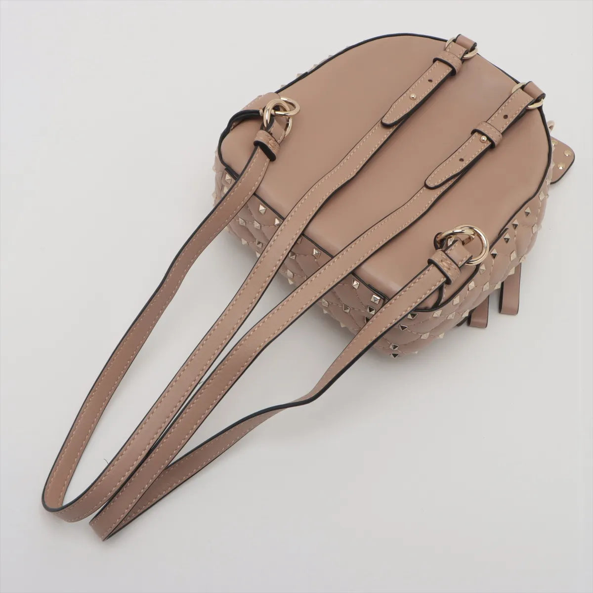 The Valentino Matelassé Rockstud Backpack in Dark Beige combines luxury and functionality with its elegant quilted leather design and signature pyramid Rockstud embellishments. The stylish backpack features a spacious interior, ideal for carrying everyday essentials, while the multiple compartments ensure organization. It has a zip-around closure that opens to a spacious interior. On the front, a convenient zip pocket provides easy access to smaller items.
